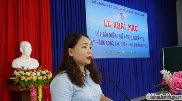 Đ/c Huỳnh Thị Hằng Nga, Bí thư Tỉnh đoàn phát biểu trong lễ khai giảng lớp tập huấn |