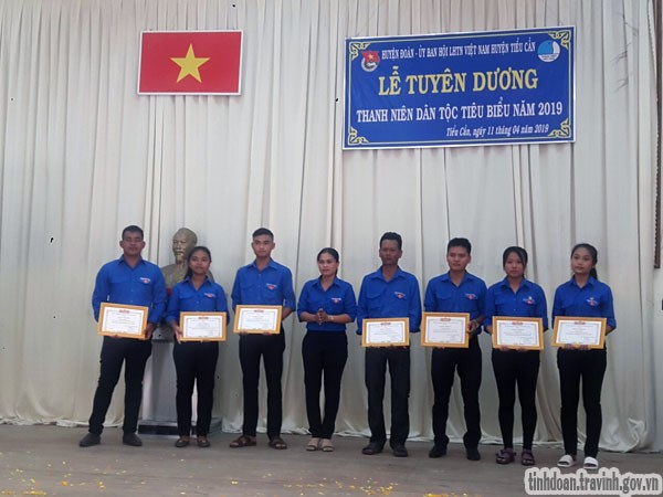 Bên cạnh đó, sáng ngày 11/4/2019, tại Trường PT Dân tộc nội trú THCS và THPT Tiểu Cần, Ban Thường vụ huyện đoàn và Ủy ban Hội LHTN Việt Nam huyện long trọng tổ chức Lễ tuyên dương thanh niên dân tộc tiêu biểu năm 2019. Tại buỗi lễ Ban Thường vụ huyện đoàn đã tuyên dương 17 đồng chí là cán bộ, đoàn viên, hội viên, thanh niên dân tộc tiêu biểu trong học tập và làm theo tư tưởng, đạo đức, phong cách Hồ Chí Minh. Bên cạnh đó, nhằm tạo điều kiện cho thanh niên dân tộc Khmer trên địa bàn có dịp giao lưu, học hỏi, tạo không khí vươi tươi trong những ngày Tết cổ truyền, Ban Thường vụ huyện đoàn và Ủy ban Hội LHTN Việt Nam huyện phối hợp với Chi hội Hội LHTN Việt Nam Chùa Ô Veng Thmây (Chùa Sóc Dừa) tổ chức giải bóng chuyền và hoạt động trò chơi dân gian tại chùa Arunransai Chac Akrôn (Chùa Đại Trường), thu hút trên 400 lượt người tham gia cổ vũ, tổng kinh phí tổ chức 10.000.000 đồng. Đây là một hoạt động có ý nghĩa thiết thực, nhằm kịp thời phát hiện và tuyên dương những thanh niên dân tộc tiêu biểu trong công tác Đoàn, Hội để tạo hiệu ứng lan tỏa tích cực đến thanh thiếu niên dân tộc Khmer nói riêng, thanh niên trong toàn huyện nói chung phấn đấu trong học tập và lao động, góp phần xây dựng tổ chức Đoàn, Hội ngày càng vững mạnh, phát triển. Đây là những hoạt động có ý nghĩa thiết thực, nhằm tạo hiệu ứng lan tỏa tích cực đến thanh thiếu niên dân tộc Khmer nói riêng, thanh niên trong toàn huyện nói chung phấn đấu trong học tập và lao động, góp phần xây dựng tổ chức Đoàn, Hội ngày càng vững mạnh, phát triển.