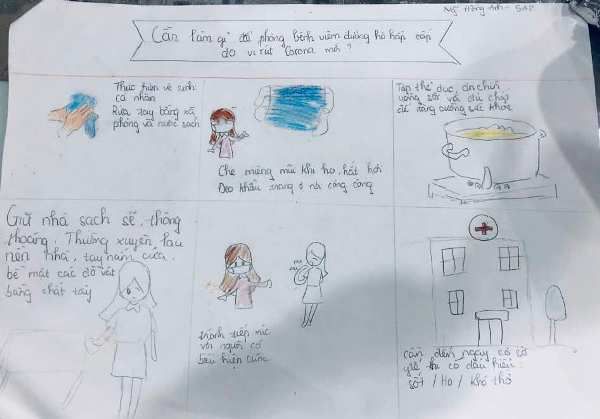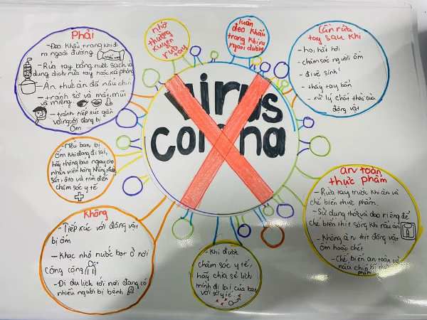 – Bằng sự sáng tạo không ngừng các con hãy tạo ra những câu khẩu hiệu, sơ đồ tư duy hoặc những bức tranh tuyên truyền về dịch bệnh Corona và các biện pháp phòng ngừa để kiến thức hữu ích được lan toả đến tất cả mọi người nhé!