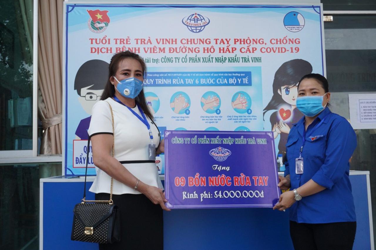 Vận động công ty xuất nhập khẩu tỉnh Trà Vinh trao tặng 09 bồn nước rửa tay trị giá 54.000.000 đồng cho 09 huyện, thị, thành phố và tặng 150 phần quà trị giá 22.500.000 đồng cho người dân có hoàn cảnh khó khăn trên địa phần thành phố Trà Vinh và xã Long Sơn (huyện Cầu Ngang). Vận động nhà tài trợ tặng dụng cụ y tế, sữa và khẩu trang y tế cho Bệnh viện Phổi tỉnh Trà Vinh (Bệnh viện dã chiến 1 chẩn đoán và điều trị bệnh Covid-19) với kinh phí trên 15 triệu đồng. Ngoài ra, Ủy ban Hội LHTN Việt Nam tỉnh đã tổ chức bàn giao Trạm rửa tay dã chiến tại khu khám Bệnh viện Đa khoa tỉnh Trà Vinh. Đây là Công trình thuộc chương trình chung tay phòng, chống dịch COVID – 19, vì một Việt Nam khỏe mạnh, là sáng kiến hợp tác giữa Trung ương Hội Liên hiệp thanh niên Việt Nam, Viện Sức khỏe nghề nghiệp và môi trường, Bộ Y tế, nhãn hàng Lifeboy phối hợp hỗ trợ, trị giá 50 triệu đồng.