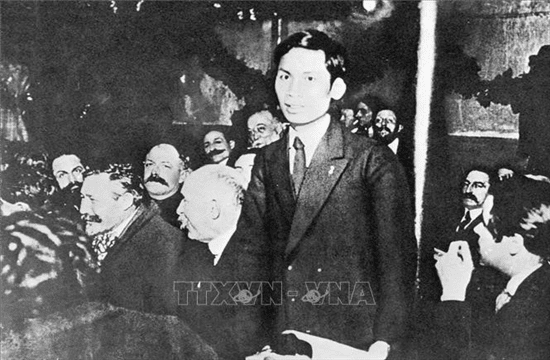Tham dự và phát biểu tại Đại hội đại biểu toàn quốc lần thứ XVIII Đảng Xã hội Pháp ở thành phố Tours, ngày 26/12/1920 với tư cách là đại biểu Đông Dương, chàng thanh niên yêu nước Nguyễn Ái Quốc (tên của Chủ tịch Hồ Chí Minh trong thời gian hoạt động cách mạng ở Pháp) ủng hộ Luận cương của Lê-nin về vấn đề dân tộc và thuộc địa. Người tham gia sáng lập Đảng Cộng sản Pháp và trở thành người cộng sản Việt Nam đầu tiên. Ảnh: Tư liệu TTXVN