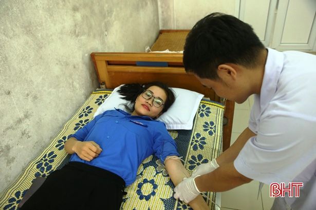 Từ tấm gương của Tuyên, nhiều ĐVTN khác trên địa bàn xã cũng đã hăng hái tham gia phong trào (Ảnh: ĐVTN xã Thạch Thắng tham gia ngày hội hiến máu của huyện Thạch Hà)