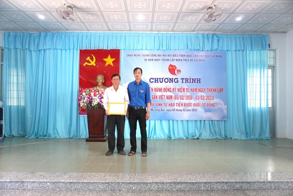 Trong chương trình, Ban Thường vụ xã Đoàn Mỹ Long Bắc trao danh sách 06 đoàn viên ưu tú cho Đảng trên tổng số 107 đoàn viên ưu tú của huyện Cầu Ngang giới thiệu cho Đảng trong dịp này.