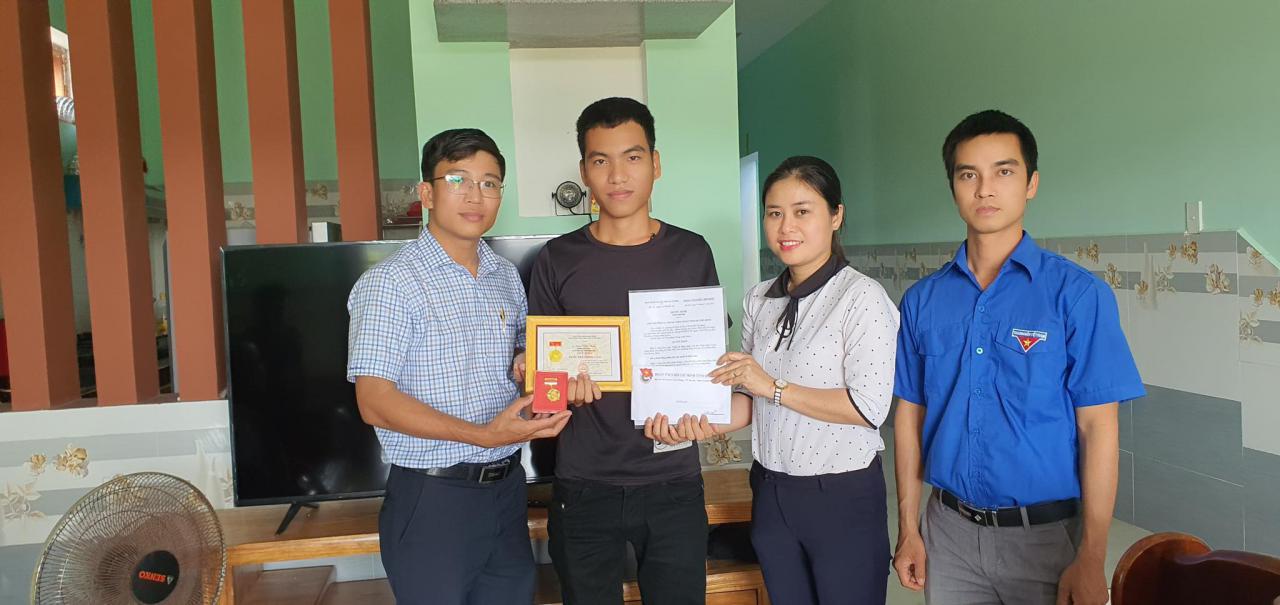 ĐTN: Thừa ủy quyền TW Đoàn, chiều 12/3, đồng chí Nguyễn Xuân Đức – Phó Bí thư thường trực Tỉnh đoàn, Chủ tịch Hội LHTN Việt Nam tỉnh Quảng Nam đã trao Huy hiệu “Tuổi trẻ dũng cảm” cho anh Trần Văn Tròn phường Điện Dương, thị xã Điện Bàn).