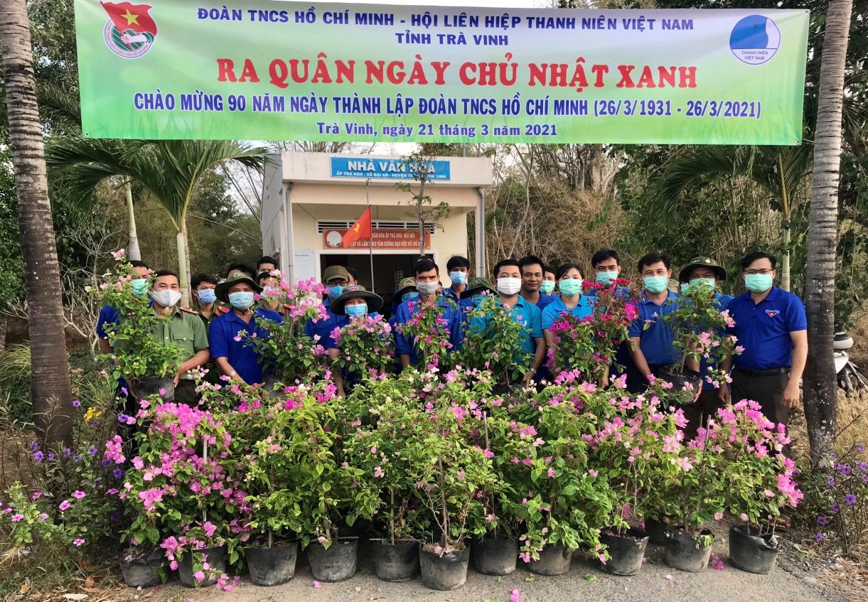 Thiết thực lập thành tích chào mừng kỷ niệm 90 năm Ngày thành lập Đoàn TNCS Hồ Chí Minh, ngày 21/3/2021 Ban Thường vụ Tỉnh Đoàn chọn đơn vị huyện Trà Cú làm điểm tổ chức ra quân thực hiện “Ngày chủ nhật xanh” đợt 1 năm 2021 với nhiều hoạt động, phần việc có ý nghĩa như: tổ chức trồng mới cây xanh, tuyên truyền, phổ biến nâng cao nhận thức của lực lượng đoàn viên, thanh niên và người dân về ý thức bảo vệ môi trường, tổ chức các hoạt động hưởng ứng phong trào “Chống rác thải nhựa”, vệ sinh môi trường, phát hoang bụi rậm, chỉnh trang mỹ quan đô thị, khu dân cư. Kết quả tại đơn vị huyện Trà Cú đoàn viên thanh niên đã tổ chức trồng mới 100 cây bông giấy tại tỉnh lộ 914 kết hợp chăm sóc tuyến đường hoa, vệ sinh môi trường, tổ chức khám bệnh, phát thuốc miễn phí và tặng quà cho 12 cụ già neo đơn tại xã Đại An với tổng kinh phí 06 triệu đồng, bên cạnh đó còn tổ chức hoạt động “Bữa cơm yêu thương” và nhiều hoạt động tham gia xây dựng đô thị văn minh tại Thị trấn Định An.