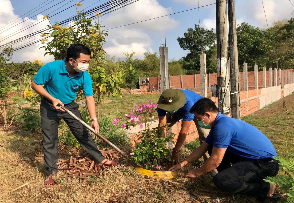 (Đồng chí Võ Minh Nhựt, Phó Bí thư Tỉnh Đoàn cùng các đoàn viên