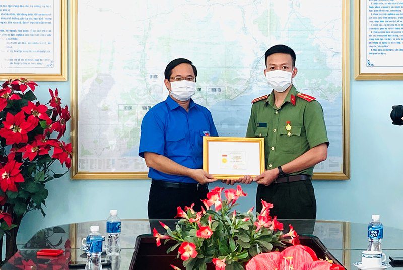 ĐTN: Chiều 18/5, thừa uỷ quyền của T.Ư Đoàn, Tỉnh đoàn Bình Thuận đã trao Huy hiệu “Tuổi trẻ dũng cảm” cho Thiếu uý Trần Minh Châu – đoàn viên Chi đoàn An ninh, công an Thị xã La Gi, tỉnh Bình Thuận đã có hành động dũng cảm cứu người bị đuối nước.