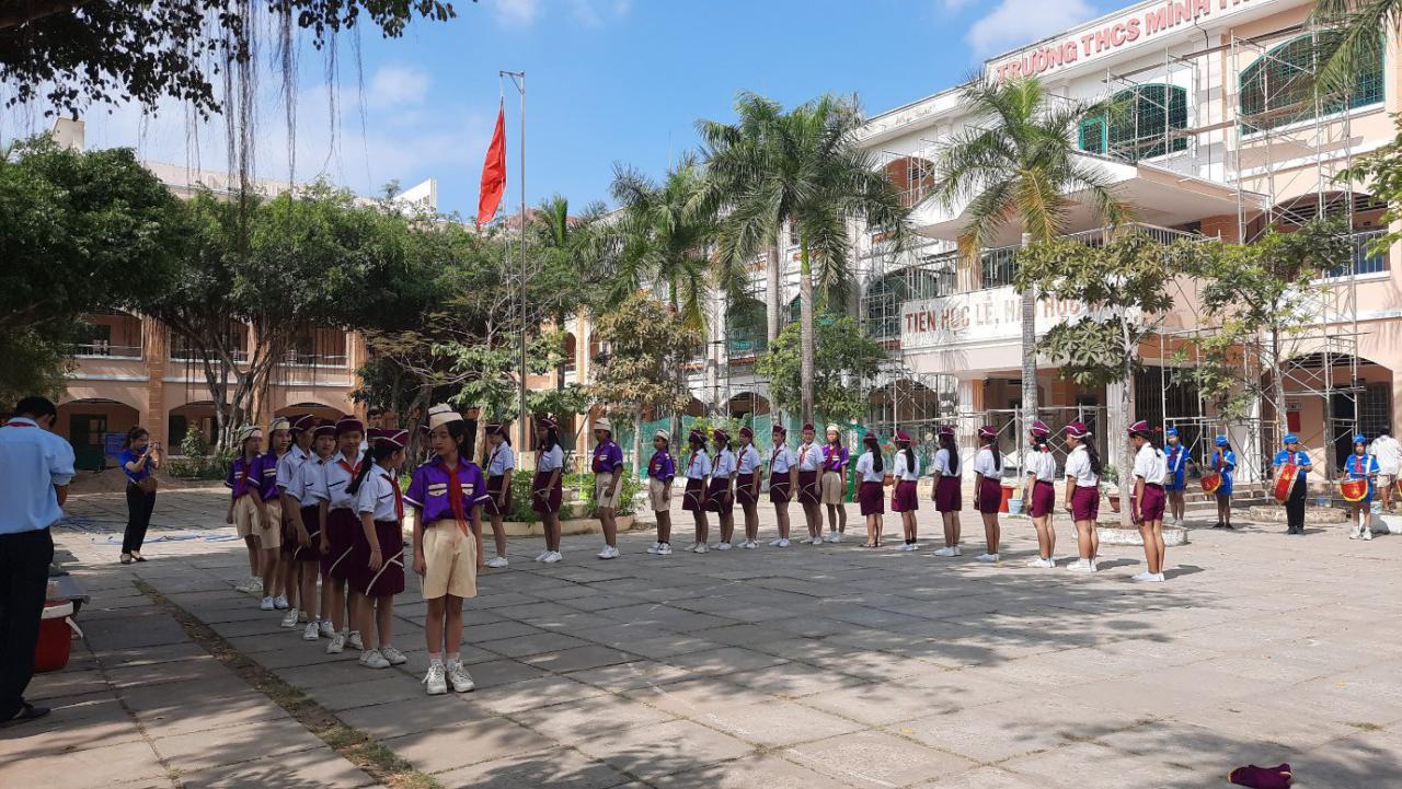 Vừa qua, tại Liên đội trường THCS Minh; Hội đồng Đội thành phố đã tổ chức lớp tập huấn kỹ năng, nghiệp vụ công tác Đội cho 44 em học sinh là cán bộ chỉ huy Đội, phụ trách sao nhi đồng năm học 2020 – 2021. Kết quả, các em học sinh được giáo viên Tổng phụ trách Đội hướng dẫn các kỹ năng bổ ích tập trung vào các nội dung như: Nghi thức Đội TNTP Hồ Chí Minh, các yêu cầu đội viên, đội hình, đội ngũ, nghi lễ của Đội, kỹ năng quản lý trò chơi,…