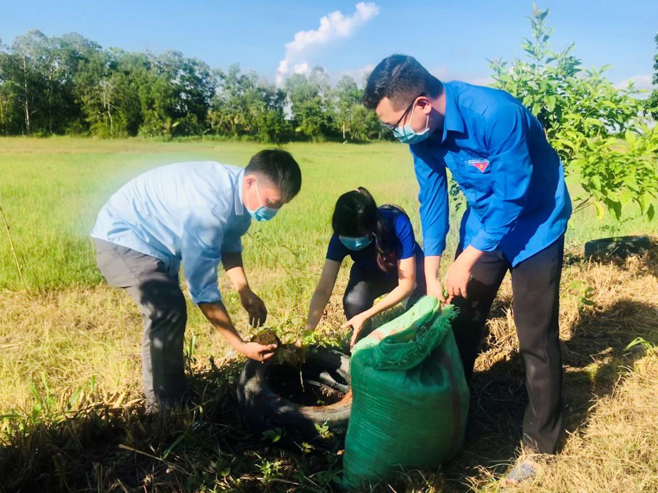 Đoàn viên thanh niên tổ chức thu gom xử lý rác thải, tạo mỹ quan môi trường