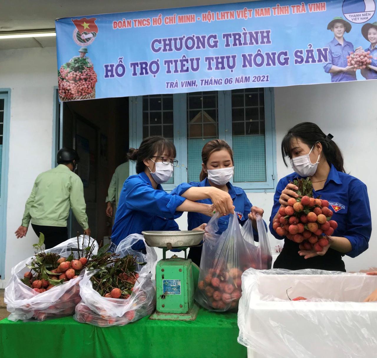 Nhằm tiếp tục thực hiện tốt chương trình “Chia sẻ yêu thương, chung tay vượt qua đại dịch” do Trung ương phát động, với khẩu hiệu “Kết nối nông sản, san sẻ yêu thương, hỗ trợ tiêu thụ vải thiều” ngày 16/6 Tỉnh đoàn Trà Vinh và Hội Liên hiệp Thanh niên Việt Nam tỉnh Trà Vinh đã tiếp tục triển khai thực hiện chương trình “Hỗ trợ tiêu thụ nông sản” trên địa bàn thành phố Trà Vinh. Qua đợt triển khai lần thứ hai này đã triển khai hỗ trợ tiêu thụ hơn 4,6 tấn vải với tổng giá trị tiền mặt hơn 133 triệu đồng.