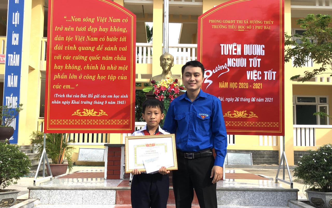 Sáng 26/6, Trường tiểu học số 1 Phú Bài, TX. Hương Thủy, tỉnh Thừa Thiên – Huế đã tổ chức lễ tuyên dương em Chế Nguyễn Vĩnh Hưng học lớp 5/3 của nhà trường sau khi có hành động nhặt được của rơi trả người đánh mất.