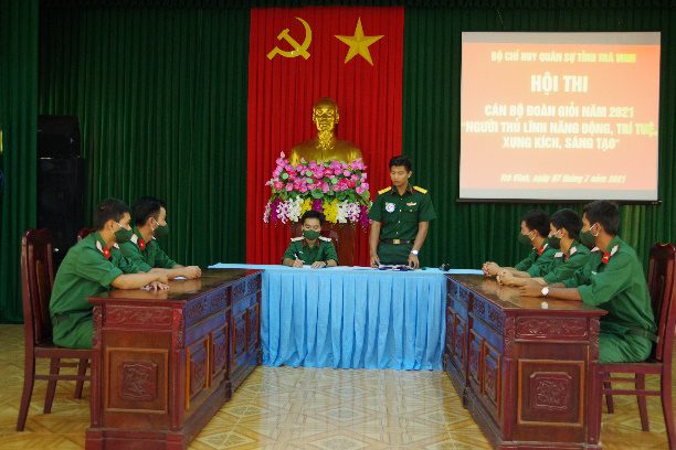 Ngày 07/7/2021, Bộ CHQS tỉnh Trà Vinh đã tổ chức hội thi cán bộ Đoàn giỏi năm 2021 với chủ đề “Người Thủ lĩnh năng động, trí tuệ, xung kích, sáng tạo”. Tham gia hội thi có 08 thí sinh là Bí thư Đoàn cơ sở, Bí thư Chi đoàn đến từ các cơ quan, đơn vị trực thuộc Bộ CHQS tỉnh. Dự lễ khai mạc có Đại tá Trương Văn Thẩm-Chính ủy Bộ CHQS tỉnh, Đại tá Lê Văn Thống-Phó Chính ủy-Bộ CHQS tỉnh dự và chỉ đạo hội thi.