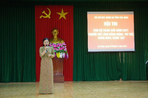 Ngày 07/7/2021, Bộ CHQS tỉnh Trà Vinh đã tổ chức hội thi cán bộ Đoàn giỏi năm 2021 với chủ đề “Người Thủ lĩnh năng động, trí tuệ, xung kích, sáng tạo”. Tham gia hội thi có 08 thí sinh là Bí thư Đoàn cơ sở, Bí thư Chi đoàn đến từ các cơ quan, đơn vị trực thuộc Bộ CHQS tỉnh. Dự lễ khai mạc có Đại tá Trương Văn Thẩm-Chính ủy Bộ CHQS tỉnh, Đại tá Lê Văn Thống-Phó Chính ủy-Bộ CHQS tỉnh dự và chỉ đạo hội thi.
