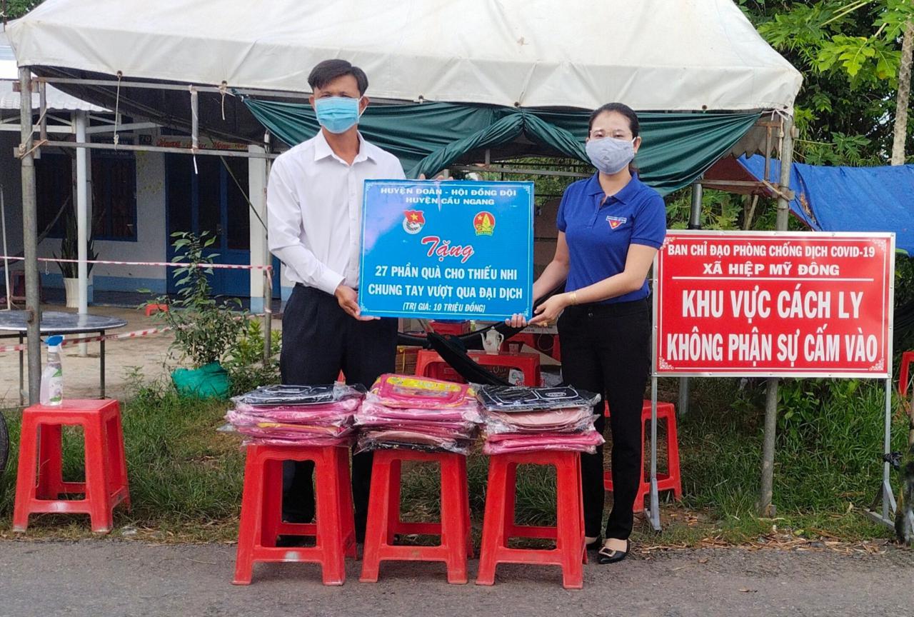 Theo đó, các cấp bộ Đoàn, Đội đã vận động các nguồn lực xã hội hóa nhằm chăm lo, hỗ trợ về mặt vật chất cho thiếu nhi tại khu cách ly, khu phong tỏa, các em thiếu nhi là con em của người lao động bị ảnh hưởng do dịch bệnh Covid-19,… Kết quả có 9/9 huyện, thị, thành Đoàn có triển khai và đã tặng hơn 400 phần quà gồm sữa, các nhu yếu phẩm, khẩu trang, các suất ăn miễn phí,…tổng trị giá hơn 180.000.000đ.