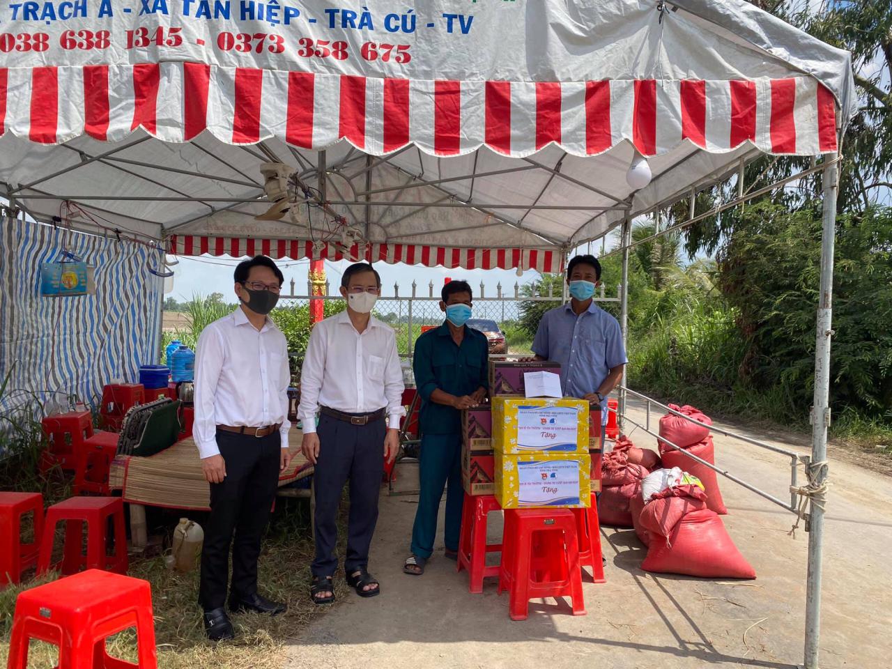 Nhằm tiếp tục hưởng ứng tốt chương trình “San sẻ yêu thương, chung tay vượt qua đại dịch”. Chiều ngày 27/8/2021 đoàn công tác của Lãnh đạo Ban Tổ chức Tỉnh ủy, Tỉnh đoàn, Hội LHTN Việt Nam tỉnh Trà Vinh đã đến thăm tặng quà, động viên các chiến sĩ đang làm nhiệm vụ ở chốt chặn tại xã Tân Hiệp và xã Ngọc Biên của huyện Trà Cú. Tham gia đoàn có đồng chí Nguyễn Văn Hiếu, Uỷ viên Ban Thường vụ, Trưởng Ban Tổ chức Tỉnh ủy Trà Vinh, đồng chí Trần Trí Cường, Bí thư Tỉnh đoàn, Chủ tịch Hội đồng Đội Tỉnh cùng với các đồng chí trong ban chuyên môn của Tỉnh đoàn. Tại các nơi đến thăm, đoàn đã biểu dương tinh thần tham gia chống dịch với quyết tâm cao của các chiến sĩ nơi tuyến đầu, đồng thời nêu cao tinh thần “chống dịch như chống giặc”, đoàn cũng ân cần thăm hỏi, động viên các chiến sĩ tiếp tục hoàn thành tốt nhiệm vụ được giao góp phần hoàn thành mục tiêu chung của tỉnh là đẩy lùi dịch bệnh, sớm đưa cuộc sống của bà con nhân dân trong tỉnh trở lại cuộc sống bình thường mới, bên cạnh đó còn củng cố, phát triển kinh tế. Dịp này, đoàn đã tặng mỗi chốt một phần quà gồm: nước giải khát và một số nhu yếu phẩm cần thiết tổng giá trị các phần quà hơn 15 triệu đồng.