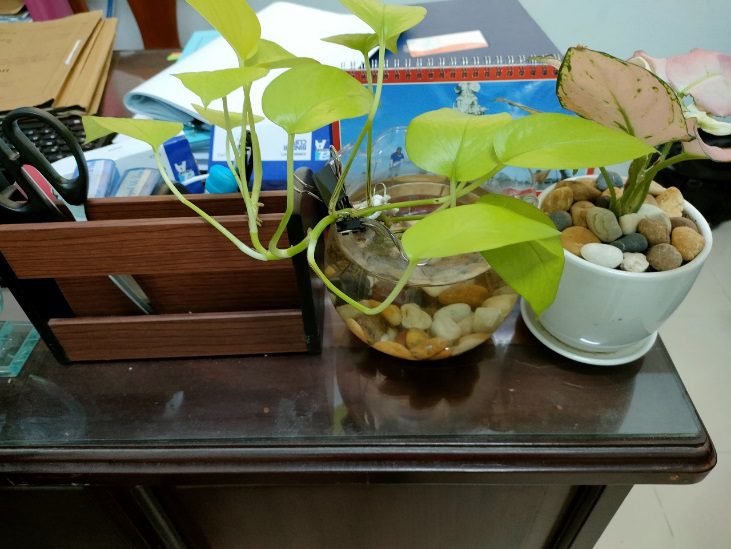 và trồng chậu cây cảnh tại bàn làm việc)