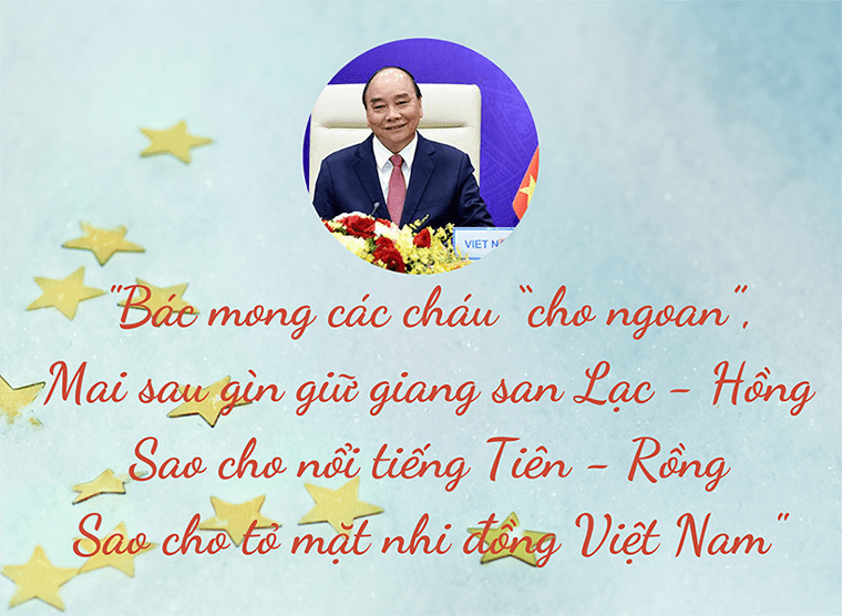 Bác gửi đến các cháu nhiều tình thương yêu, trìu mến. Chúc các cháu vui Tết Trung thu thật an toàn, vui khỏe! Thân ái, Nguyễn Xuân Phúc |