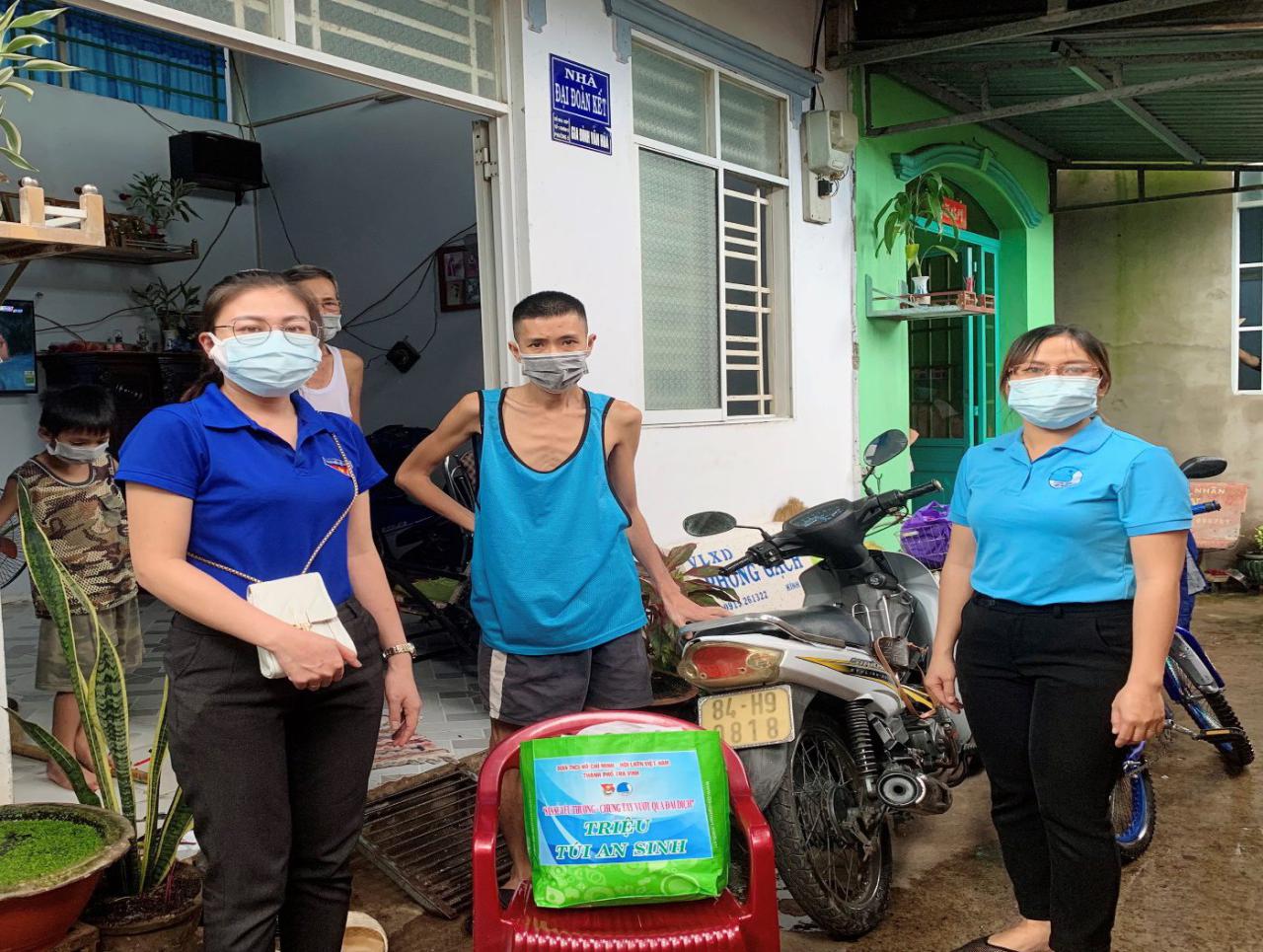 Tiếp tục hưởng ứng chương trình “Triệu túi an sinh” do Trung ương Đoàn phát động. Nhằm hỗ trợ đoàn viên thanh niên, đặc biệt là thanh niên yếu thế (khuyết tật) bị ảnh hưởng bởi đại dịch Covid-19. Ngày 21/9/2021, Thành đoàn – Hội Liên hiệp Thanh niên Việt Nam thành phố Trà Vinh tiếp tục tổ chức chương trình “Triệu túi an sinh”, qua đó đã trao tặng 38 phần quà gồm gạo, trứng và các nhu phẩm thiết yếu cho thanh niên khuyết tật khó khăn trên địa bàn 08 phường và xã Long Đức với tổng số tiền 9,5 triệu đồng.