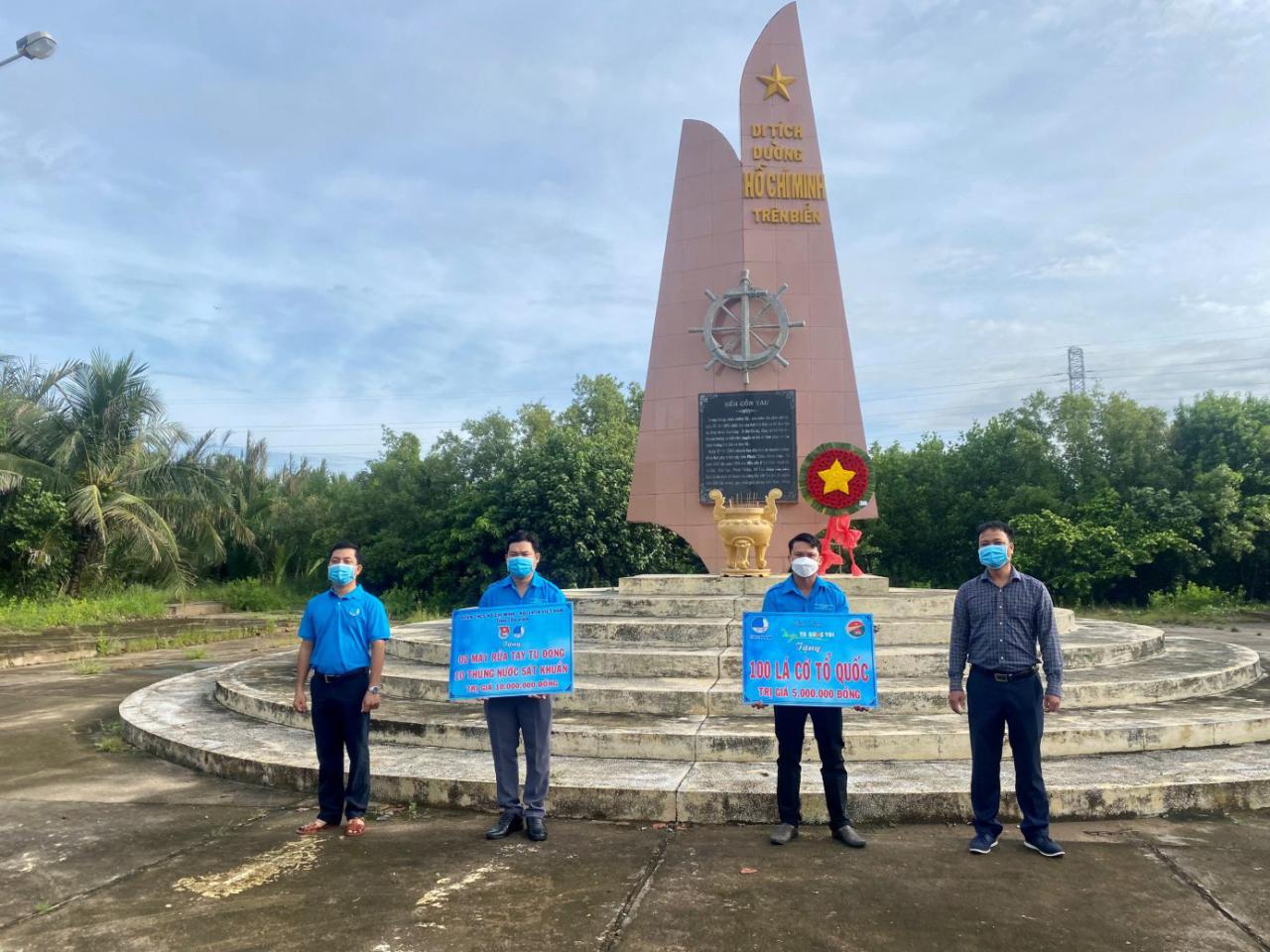 Đoàn đã đến dâng hoa, dâng hương bia tưởng niệm tại Khu di tích lịch sử cách mạng cấp quốc gia Bến tiếp nhận vũ khí Cồn Tàu thuộc ấp Cồn Tàu, xã Trường Long Hòa, thị xã Duyên Hải. Tại đây, đoàn đã nghe thuyết minh về quá trình hình thành của Bến tiếp nhận vũ khí cũng như quá trình hoạt động của Bến. Được biết, đây là một trong những mắc xích quan trọng của Đường mòn Hồ Chí Minh trên biển, trong suốt 15 năm hoạt động đây là nơi tiếp nhận 20 chuyến hàng tiếp nhận vũ khí, trang thiết bị chiến tranh do miền Bắc chi viện. Đoàn đã tiến hành trao tặng 02 máy rửa tay tự động, 10 thùng nước rửa tay sát khuẩn; 100 “Túi thuốc an sinh” (do MTQ ở Tp Hồ Chí Minh hỗ trợ) và một số phần quà khác. Tổng giá trị các phần quà gần 20 triệu đồng