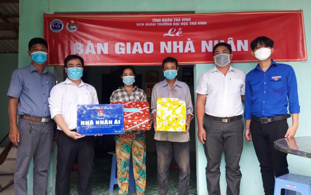 Chiều ngày 26/10/2021 đồng chí Nguyễn Nhật Thanh – UVTV Tỉnh Đoàn, Bí thư Đoàn trường Đại học Trà Vinh đã đến thăm, tặng Nhà nhân ái cho hộ gia đình ông Nguyễn Văn Dũng – Ấp Rạch Vồn, xã Hưng Mỹ, huyện Châu Thành tỉnh Trà Vinh. Kinh phí xây dựng Đoàn trường Đại học Trà Vinh vận động hỗ trợ là 25.000.000đ phần còn lại do gia đình và các tổ chức cá nhân đóng góp.