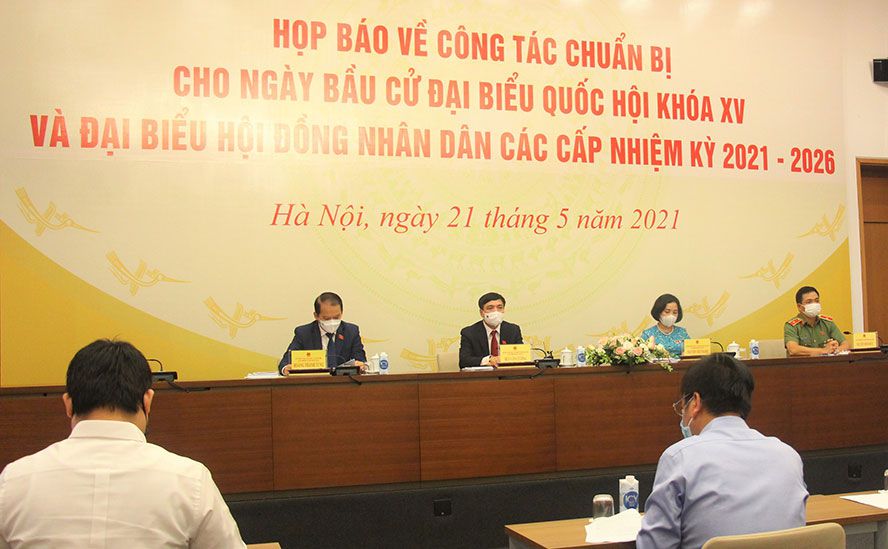 Chiều 21-5, tại Hà Nội, Ủy viên Trung ương Đảng, Tổng Thư ký Quốc hội, Chủ nhiệm Văn phòng Quốc hội, Chánh Văn phòng Hội đồng Bầu cử quốc gia Bùi Văn Cường chủ trì họp báo về công tác chuẩn bị cho ngày bầu cử đại biểu Quốc hội khóa XV và đại biểu HĐND các cấp nhiệm kỳ 2021-2026.