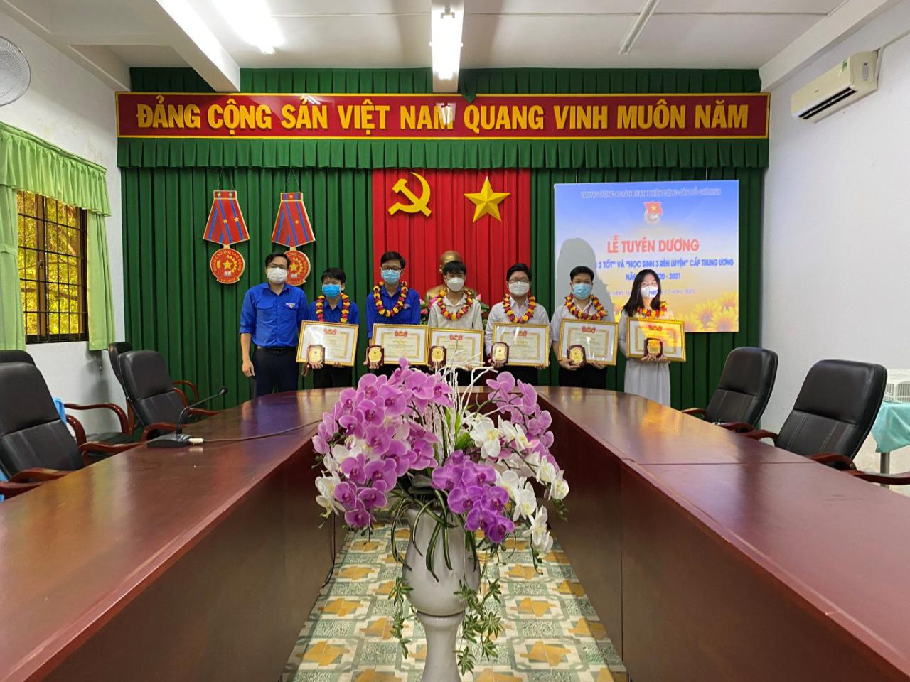 Đại diện điểm cầu tỉnh, Đồng chí Nguyễn Thanh Nhã Phó Bí thư Tỉnh Đoàn đã trao tặng Biểu trưng và Bằng khen danh hiệu “Học sinh 3 tốt” cấp Trung ương cho 06 em học sinh có thành tích nổi bật trong học tập và rèn luyện.