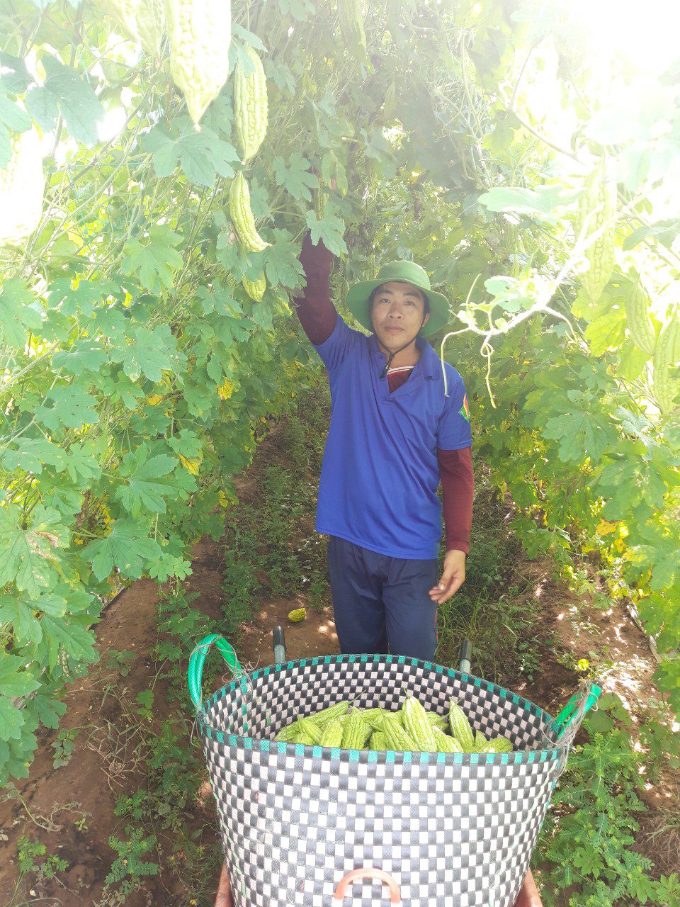 Anh Trần Quốc Văn đang thu hoạch trái khổ qua