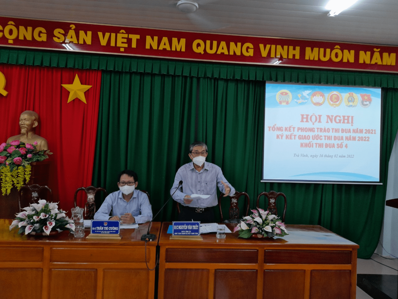 Phát biểu tại hội nghị Đồng chí Nguyễn Văn Triết, Ủy viên Ban Thường vụ Tỉnh ủy, Chủ tịch Ủy ban Mặt trận Tổ quốc Việt Nam tỉnh (Khối trưởng) ghi nhận những kết quả đạt được của các thành viên trong Khối. Mặc dù chịu ảnh hưởng của dịch bệnh Covid-19 nhưng các thành viên trong Khối không ngừng nổ lực thi đua hoàn thành tốt nhiệm vụ được giao; các thành viên trong Khối đều có nhiều công trình, phần việc ý nghĩa trong tham gia phòng, chống dịch bệnh Covid-19; hầu hết các chỉ tiêu của ngành đều đạt và vượt chỉ tiêu đề ra; có nhiều sáng kiến trong thực hiện nhiệm vụ của Khối thi đua số 4 như: Tỉnh đoàn xây dựng phóng sự về các hoạt động của các thành viên trong Khối thay cho việc thông qua báo cáo tổng kết; đăng ký phụ trách xây dựng trang Web chung của Khối để hỗ trợ các thành viên trong khối quản lý các mô hình, hoạt động tiêu biểu, góp phần giúp các thành viên trong Khối có điều kiện trao đổi, học tập kinh nghiệm lẫn nhau; Ủy ban Mặt trận Tổ quốc Việt Nam tỉnh ban hành Quy chế tổ chức và hoạt động Khối thi đua MTTQ và các tổ chức chính trị – xã hội tỉnh, qua đó cụ thể chi tiết từng tiêu chí trong bản giao ước thi đua để các thành viên trong Khối dễ thực hiện và góp phần giúp cho công tác thi đua khen thưởng được công bằng và khách quan hơn.