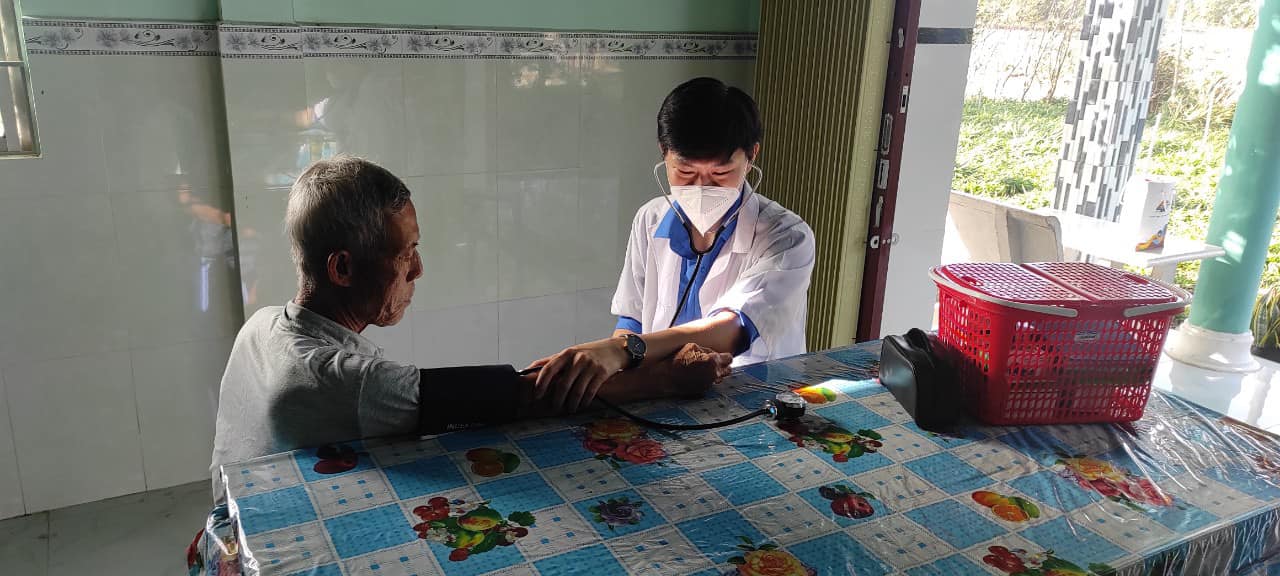 Thành viên CLB Thầy thuốc trẻ khám bệnh tại nhà cho hộ dân trên địa bàn xã Long Sơn, huyện Cầu Ngang