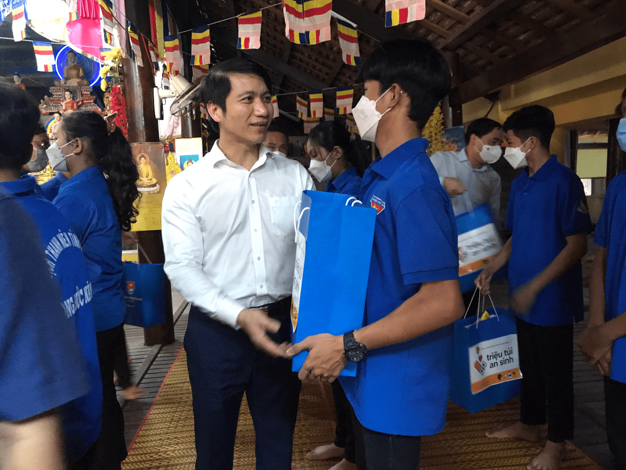 Đồng chí Nguyễn Ngọc Lương, Bí thư Trung ương Đoàn, Chủ tịch Trung ương Hội LHTN Việt Nam tặng quà cho thanh niên