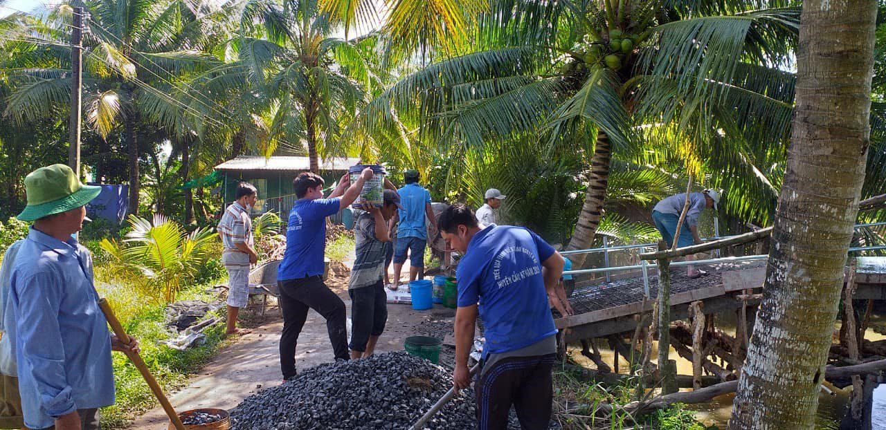 Đồng chí Đặng Phúc Điền tham gia xây dựng cầu giao thông nông thôn