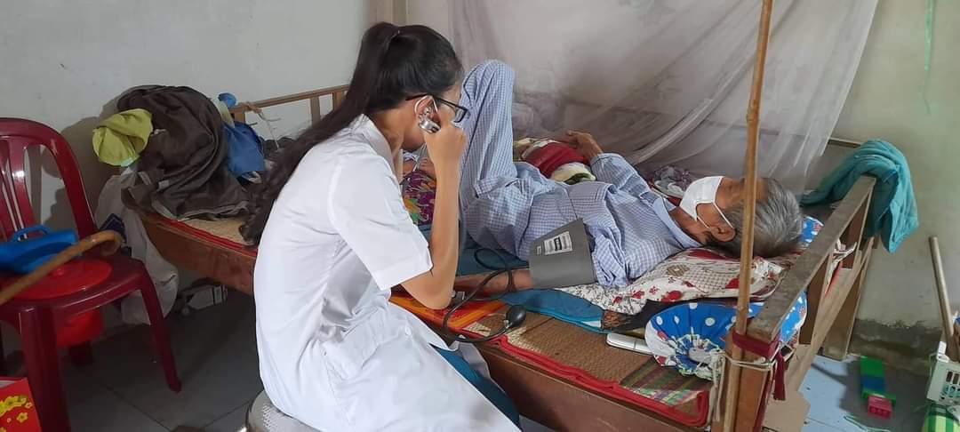 Đồng chí Ngô Thị Mỹ Hạnh thực hiện khám bệnh cho dân nghèo