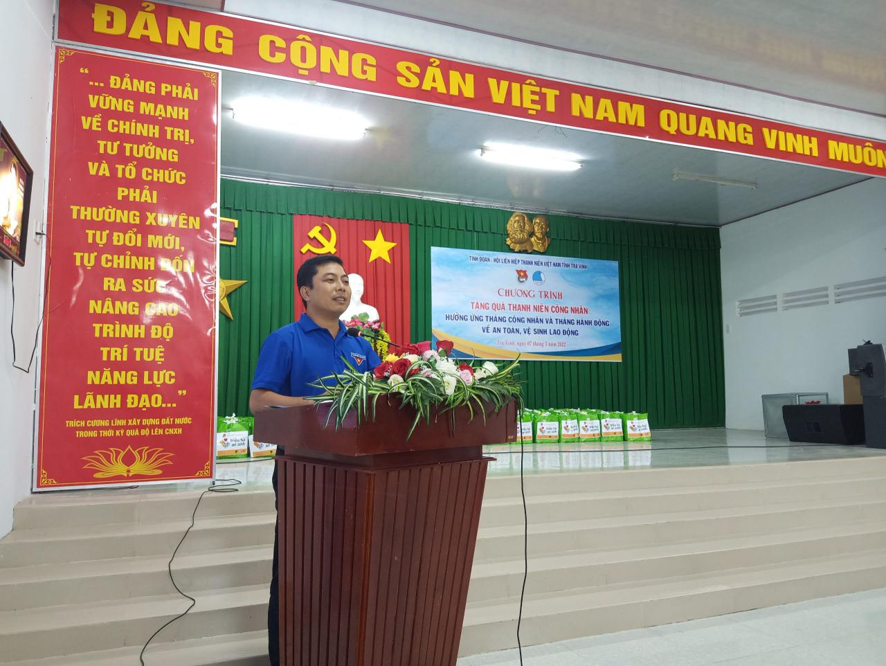Tối ngày 07/5/2022, Tỉnh đoàn – Ủy ban Hội liên hiệp thanh niên (LHTN) Việt Nam tỉnh tổ chức chương trình tặng quà thanh niên công nhân tại khu công nghiệp Long Đức (thành phố Trà Vinh), đây là hoạt động để hưởng ứng Tháng công nhân và Tháng hành động về an toàn, vệ sinh lao động năm 2022. Tham dự chương trình có đồng chí Võ Minh Nhựt, Phó Bí thư thường trực Tỉnh đoàn – Chủ tịch Ủy ban Hội LHTN Việt Nam tỉnh; đồng chí Đặng Thị Trúc Nhiên, UVTV Tỉnh đoàn, Bí thư Thành đoàn; đồng chí Trần Thanh Quang, Phó Chủ tịch Ủy ban nhân dân xã Long Đức cùng các ban đoàn viên thanh niên, thanh niên công nhân đang lao động tại khu công nghiệp Long Đức.