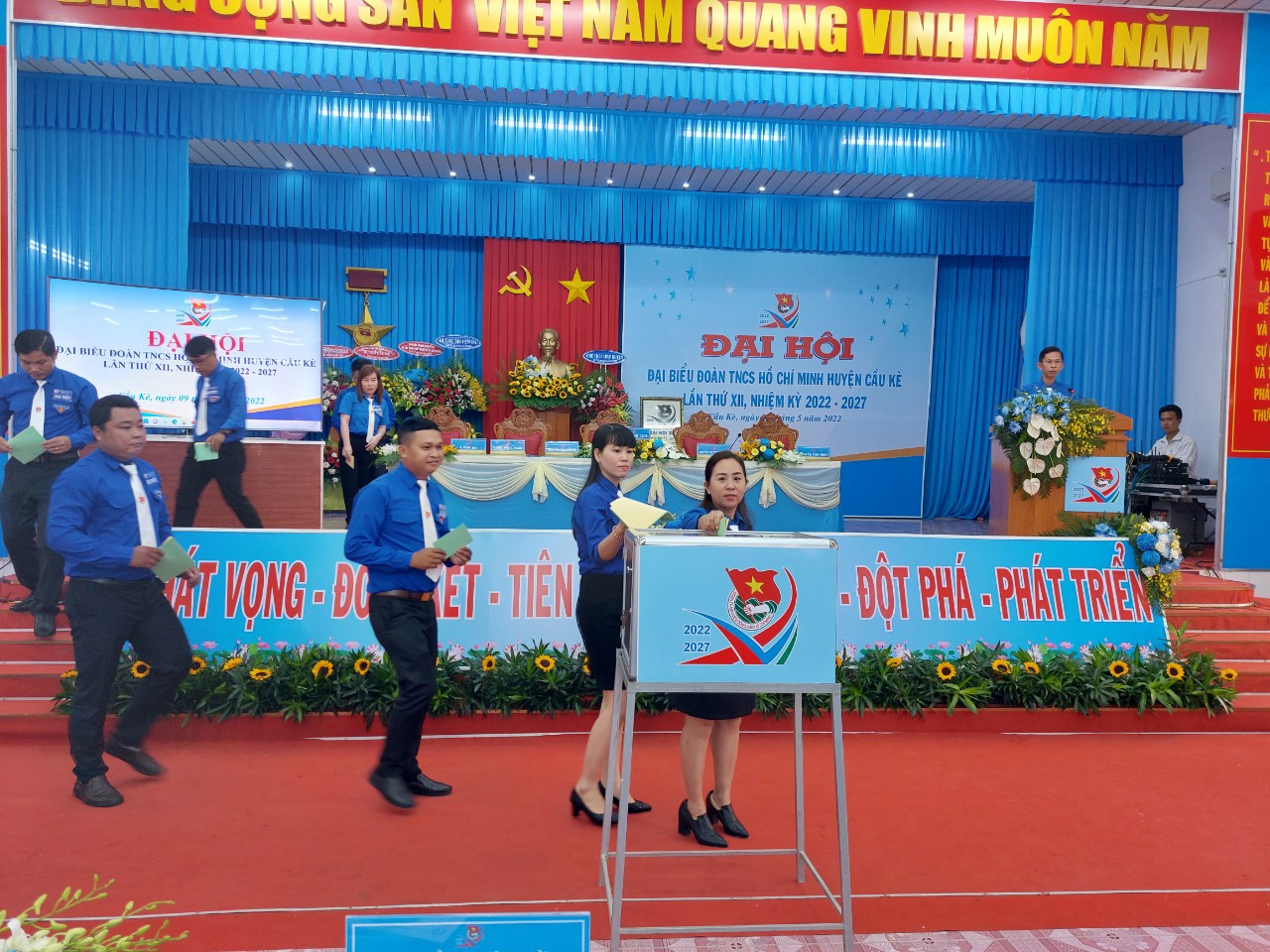 Với tinh thần “Tuổi trẻ Cầu Kè Khát vọng – Đoàn kết – Tiên phong – Sáng tạo – Đột phá – Phát triển”, đại biểu Đại hội đã sáng suốt bầu chọn 21 đồng chí Ủy viên Ban Chấp hành; 07 đồng chí Ủy viên Ban Thường vụ; bầu Ủy ban Kiểm tra Huyện đoàn gồm 05 đồng chí; bầu đoàn đại biểu dự Đại hội đại biểu Đoàn TNCS Hồ Chí Minh tỉnh Trà Vinh lần thứ 11 gồm 14 đại biểu chính thức và 05 đại biểu dự khuyết. Đồng chí Nguyễn Thị Cẩm Tú được Đại hội tín nhiệm bầu giữ chức danh Bí thư Huyện đoàn; đồng chí Nguyễn Thị Thúy Huỳnh được tín nhiệm bầu giữ chức danh Phó Bí thư Huyện đoàn, Chủ nhiệm Ủy ban Kiểm tra Huyện đoàn.