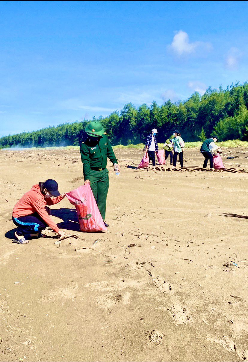 Đoàn viên cùng với chiến sĩ bộ đội biên phòng thực hiện hoạt động