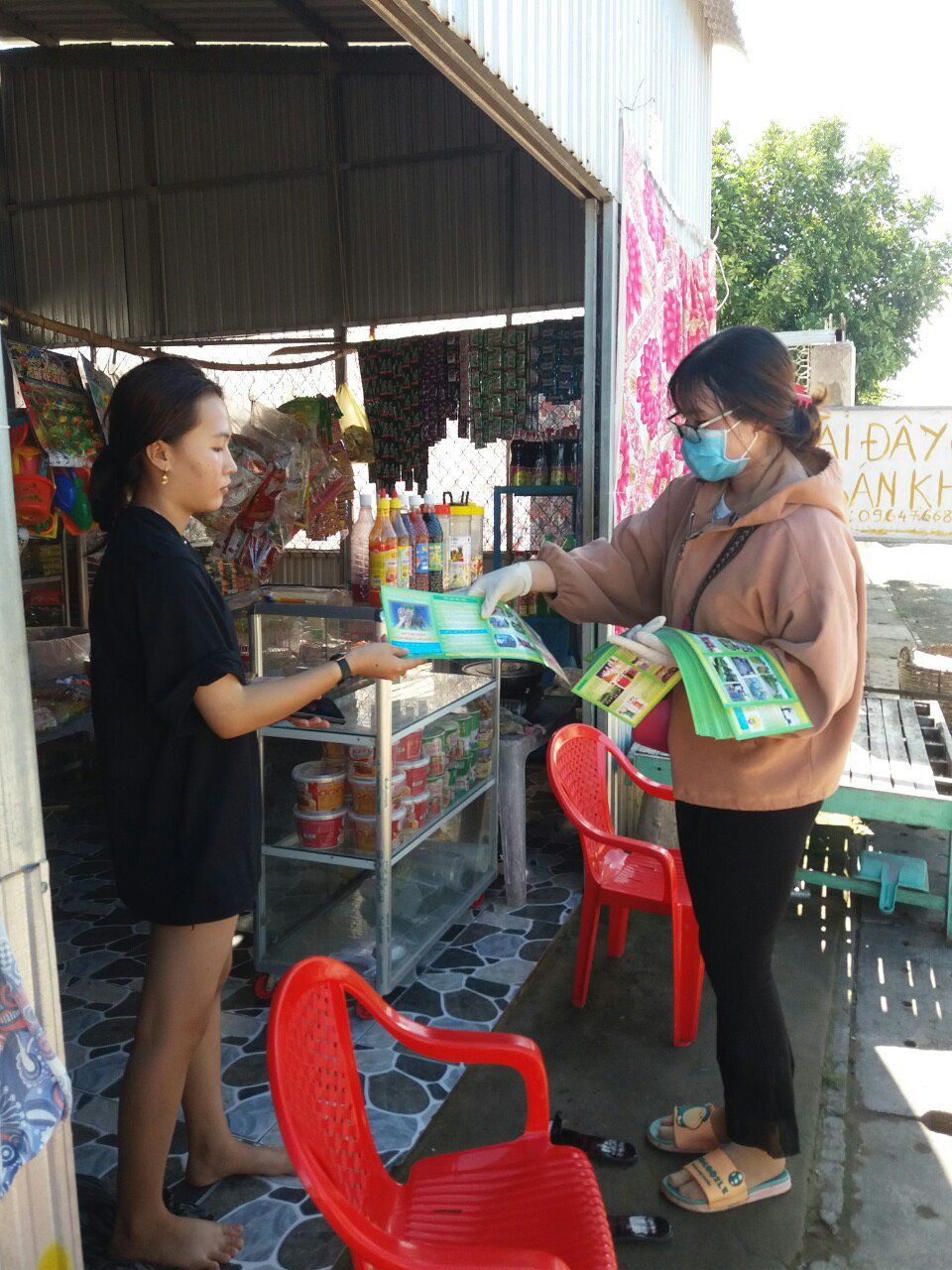 Phát tờ rơi tuyên truyền cho bà con nhân dân tại địa phương.