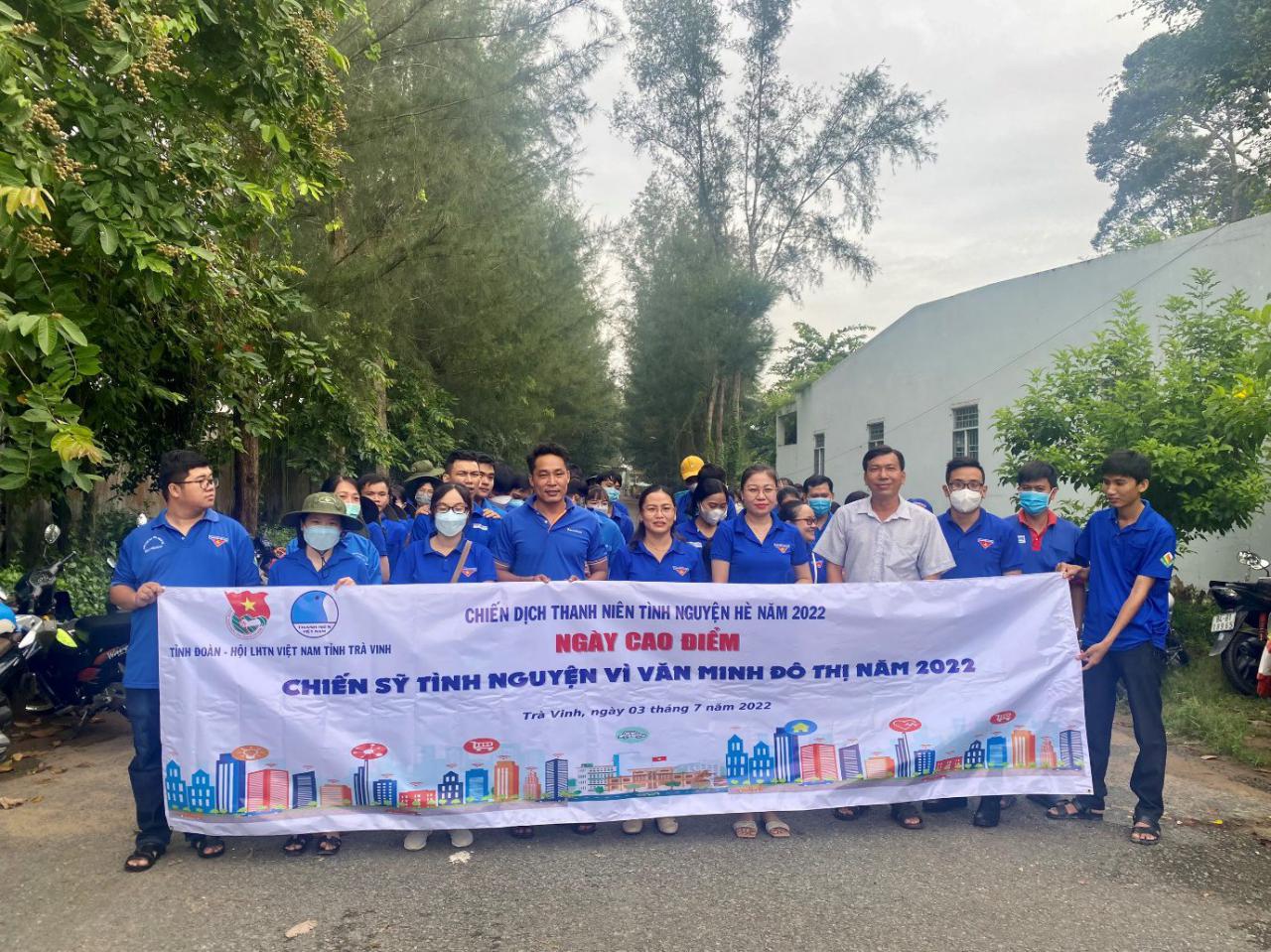 Sáng ngày 03/7/2022, Tỉnh đoàn, Hội LHTN Việt Nam tỉnh chọn Thành đoàn Trà Vinh làm điểm cấp tỉnh tổ chức ra quân đồng loạt ngày cao điểm “Chiến sỹ tình nguyện vì văn minh đô thị” năm 2022 tại Phường 9, Thành phố Trà Vinh với hơn 100 đoàn viên, thanh niên, chiến sỹ tình nguyện tham gia.