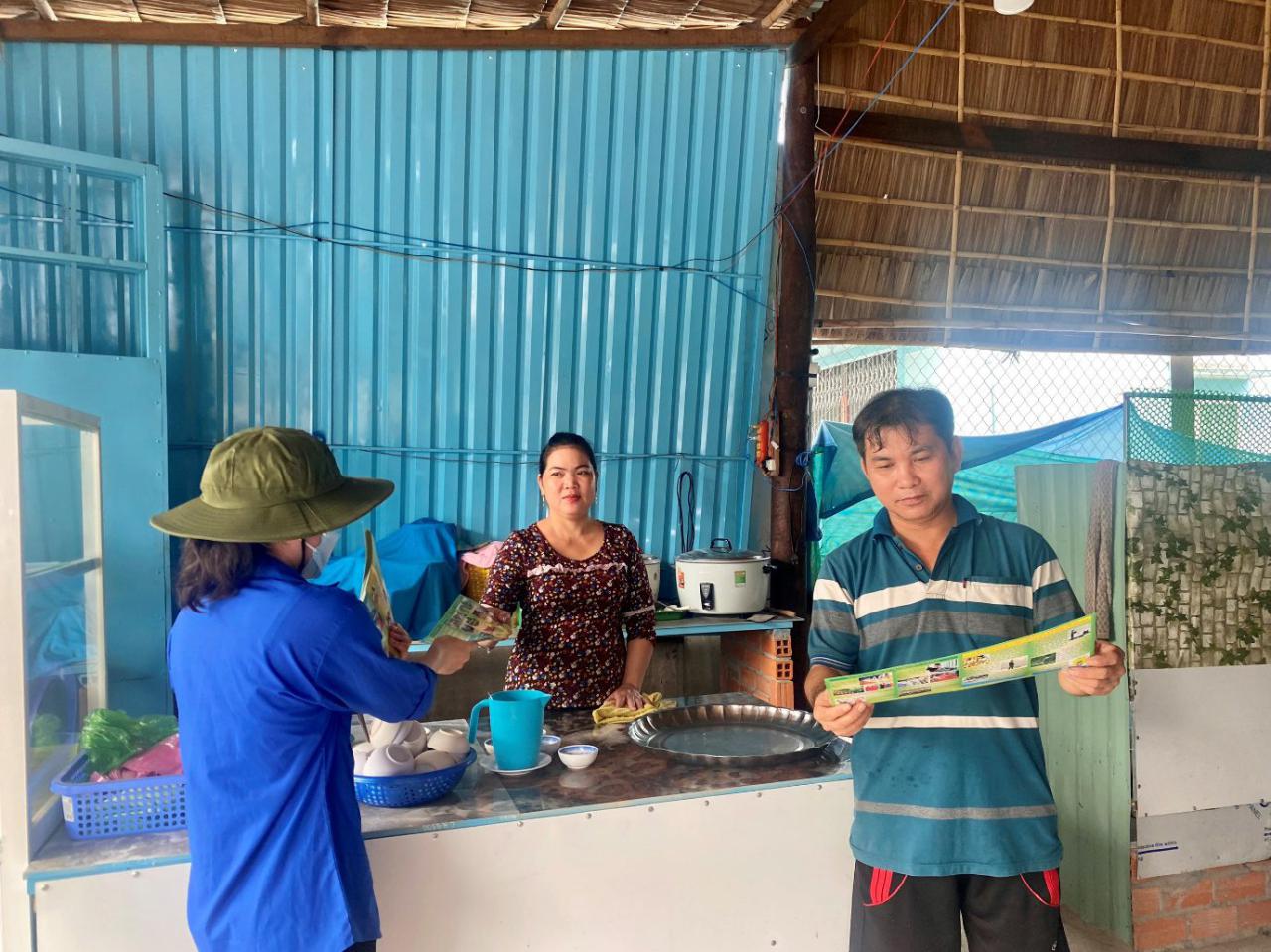 Đoàn viên thanh niên phát tờ rơi tuyên truyền.
