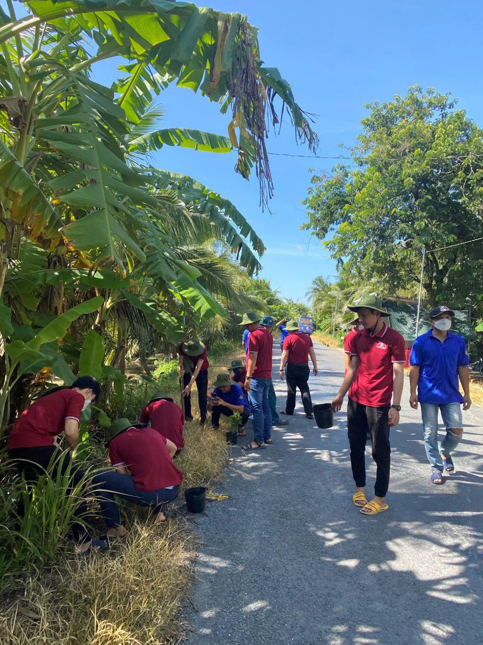Ra quân thực hiện trồng mới tuyến đường hoa tại ấp Cây Gòn, xã Hiếu Trung với chiều dài 1,5 km