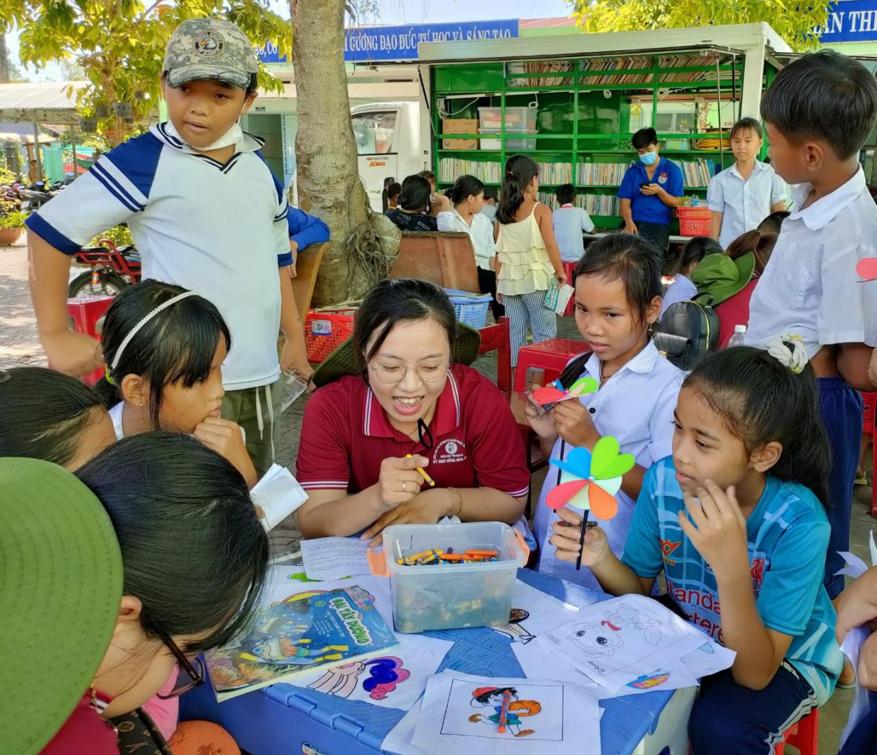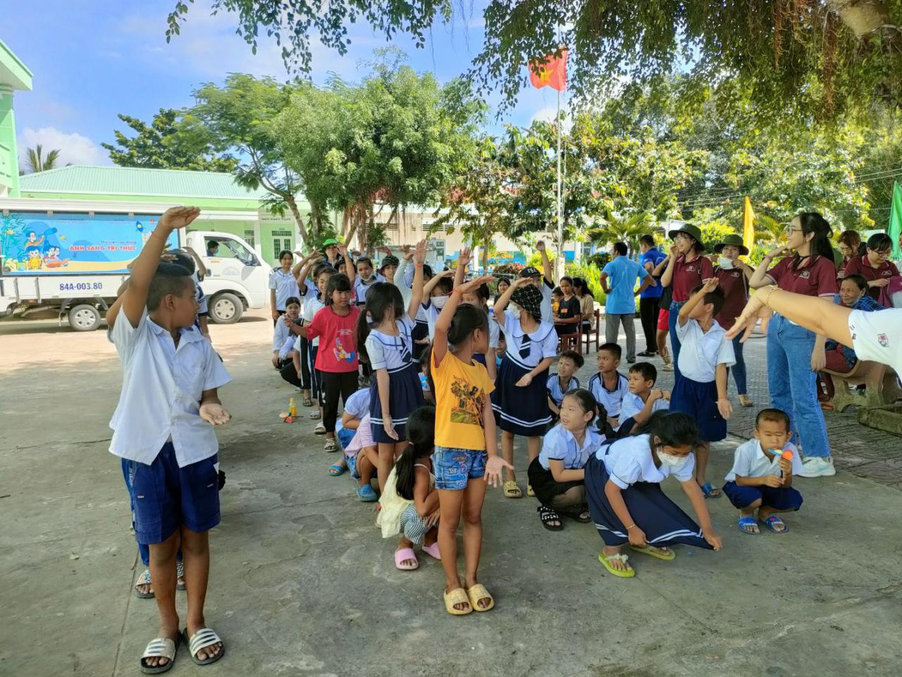 Bên cạnh đó, các chiến sĩ tình nguyện phối hợp với các Ban Giám hiệu Trường TH Hiếu Trung A tổ chức ôn tập hè và sinh hoạt hè cho các em thiếu nhi, lồng ghép với tuyên truyền văn hóa đọc. Tại đây, các em được ôn lại những kiến thức cơ bản để làm nền tảng chuẩn cho năm học mới, tham gia đọc sách,…Ngoài ra, các em còn được tham gia nhiều trò chơi như: đuổi hình bắt chữa, đố vui có thưởng, tô màu, ném banh,…Đây cũng là dịp để các em vui chơi, giải trí, thư giản sau một năm học.