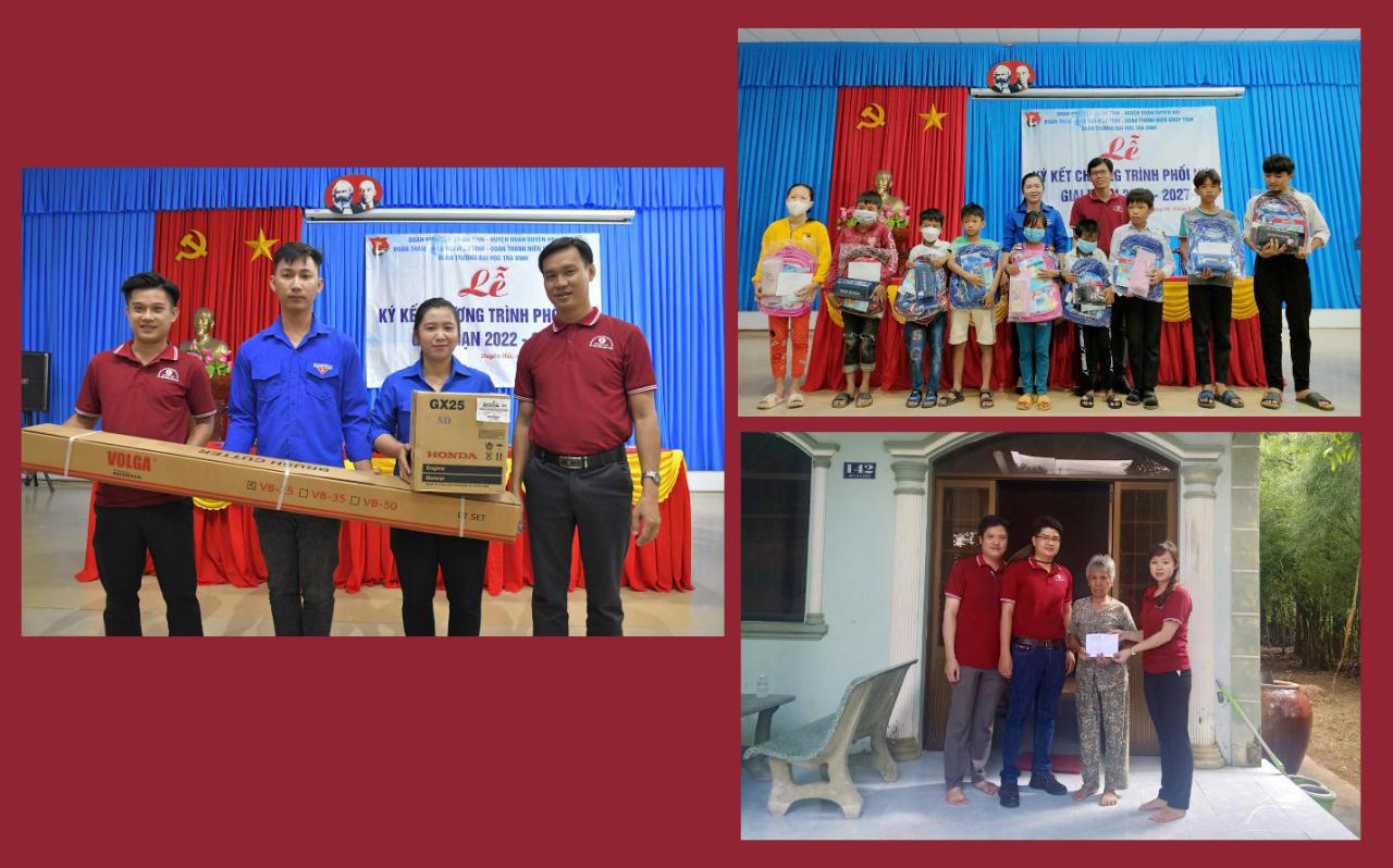 Các cơ sở Đoàn tổ chức tư vấn, giải quyết các thủ tục hành chính cho nhân dân trong đó tập trung vào các lĩnh vực mà người dân quan tâm như: bảo hiểm xã hội, đất đai, y tế,… các hoạt động thăm, hỏi tặng 118 quà gia đình chính sách nhân dịp 27/7 (kinh phí 68.000.000 đồng); trao 190 phần quà, 50 suất học bổng, 10 chiếc xe đạp cho học sinh có hoàn cảnh khó khăn (kinh phí 136.000.000 đồng).