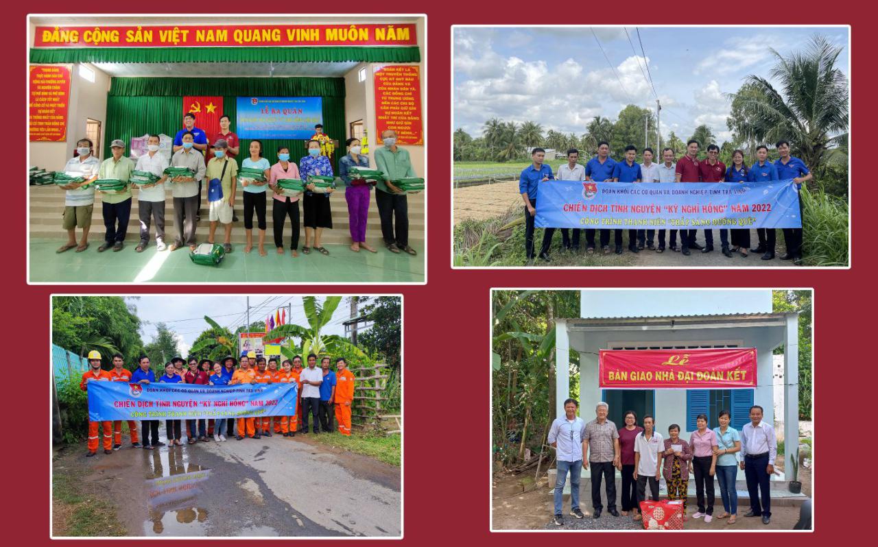 Thời gian diễn ra chiến dịch bắt đầu từ ngày 10/7 đến 15/8/2022, với 205 chiến sĩ (trong đó 90 chiến sỹ thường trực tham gia các đợt ra quân cấp Đoàn khối, 115 chiến sỹ tham gia các đội hình chuyên cấp tỉnh). Cao điểm là thực hiện ra quân trong 04 đợt liên tục vào các ngày thứ bảy và chủ nhật tại 04 huyện: Tiểu Cần, Trà Cú, Cầu Ngang và huyện Duyên Hải với nhiều hoạt động thiết thực như: Thực hiện 02 công trình thanh niên “Thắp sáng đường quê” với chiều dài 04 km (kinh phí 160.000.000 đồng); rải đá, nâng cấp, sửa chữa đường giao thông nông thôn tại xã Tân Sơn huyện Trà Cú với chiều dài 100m (kinh phí 5.000.000 đồng); tặng 02 tấn gạo, 150 túi quà an sinh cho người dân có hoàn cảnh khó khăn (kinh phí 60.000.000 đồng); thăm, hỏi tặng 28 phần quà cho gia đình chính sách, Cựu Thanh niên xung phong trị giá 14.000.000 đồng; tổ chức 01 “Bữa cơm yêu thương”; trao 02 góc học tập, 3.500 quyển tập, 125 phần quà cho trẻ em nghèo có hoàn cảnh khó khăn, học giỏi (trị giá 80.500.000 đồng); tổ chức khám bệnh cấp thuốc miễn phí cho 866 bệnh nhân (kinh phí 351.000.000 đồng); xây mới 04 căn nhà tình nghĩa, mái ấm đoàn viên (kinh phí 160.000.000 đồng); trao tặng 01 máy cắt cỏ cho xã Đông Hải, huyện Duyên Hải (kinh phí 5.000.000 đồng); phối hợp với xã Hiếu Trung xây dựng mới 01 tuyến đường hoa thanh niên (kinh phí 5.000.000 đồng).
