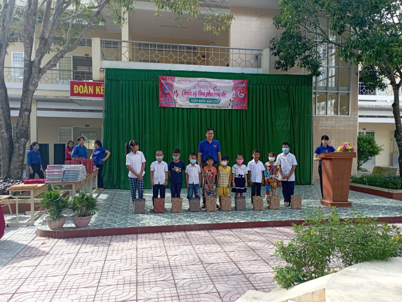 Nhằm tiếp sức, đồng hành cùng các em học sinh có hoàn cảnh khó khăn được tiếp tục đến trường, vững bước hơn trên con đường học tập. Ban tổ chức đã trao tặng 63 phần quà gồm tập, sách và sữa cho 63 em học sinh có hoàn cảnh khó khăn trị giá trên 13 triệu đồng và 16 thẻ Bảo hiểm y tế với tổng trị giá 8 triệu đồng. Đây là những phần quà ý nghĩa do Tỉnh đoàn và các doanh nghiệp trên địa bàn huyện Cầu Kè hỗ trợ trao tặng.