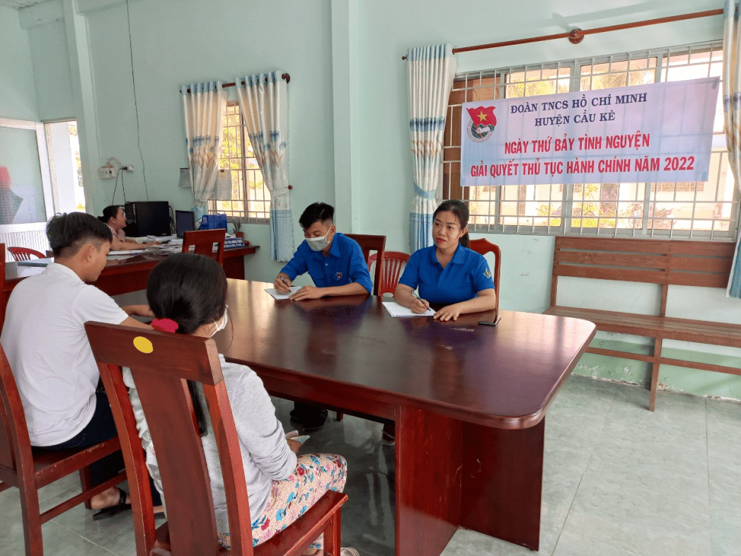 Đoàn viên thanh niên huyện Cầu Kè tham gia giải quyết thủ tục hành chính cho Nhân dân vào ngày thứ Bảy