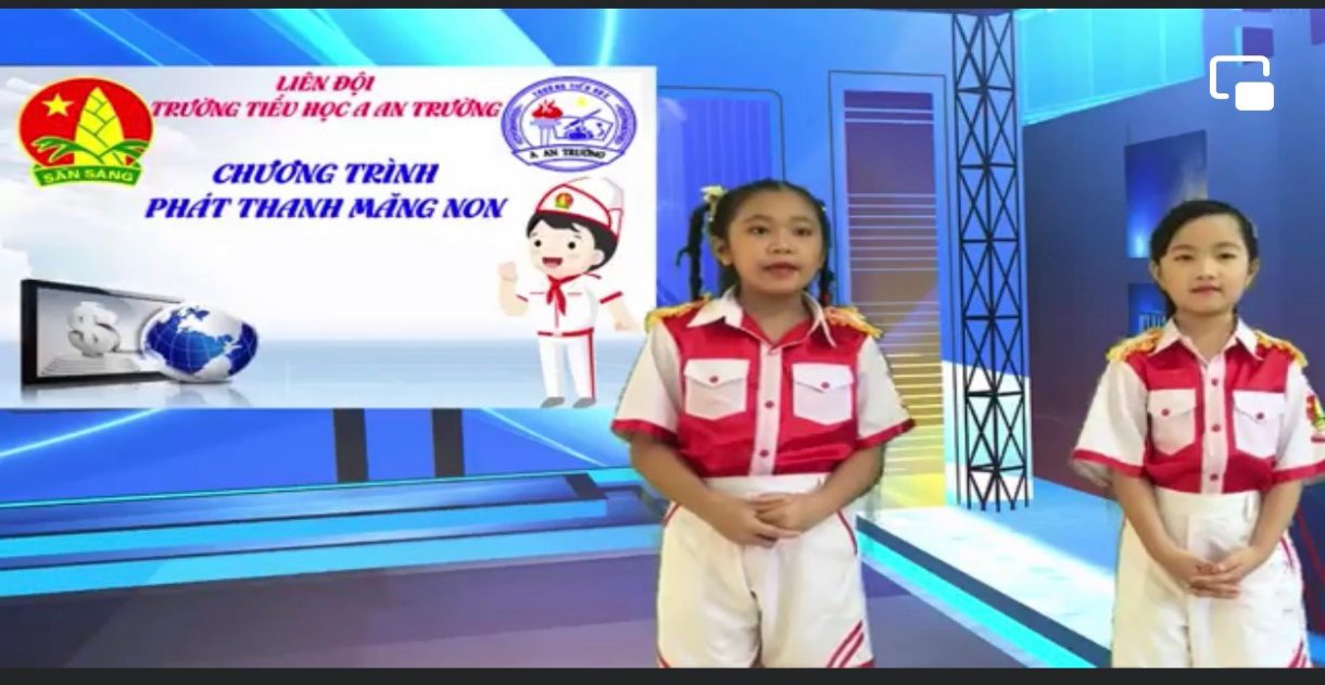 (Ảnh: Phần phát thanh măng non các thí sinh thuộc Liên đội trường Tiểu học A An Trường, huyện Càng Long)
