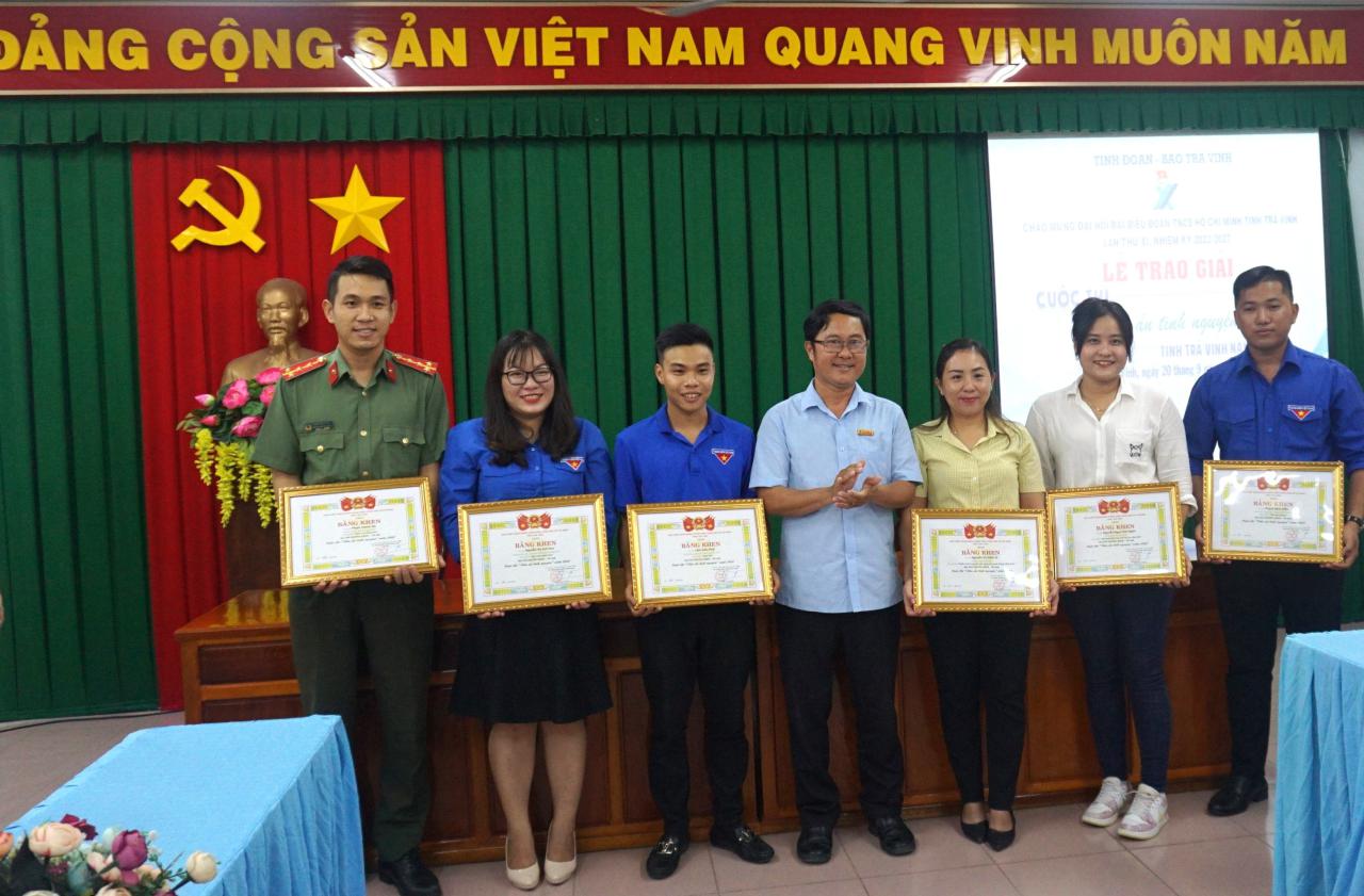 Anh Hồ Bá Thi – Phó trưởng phòng KT-VH-XH Báo Trà Vinh trao Bằng khen cho các tác giả đạt giải khuyến khích bảng thi ảnh