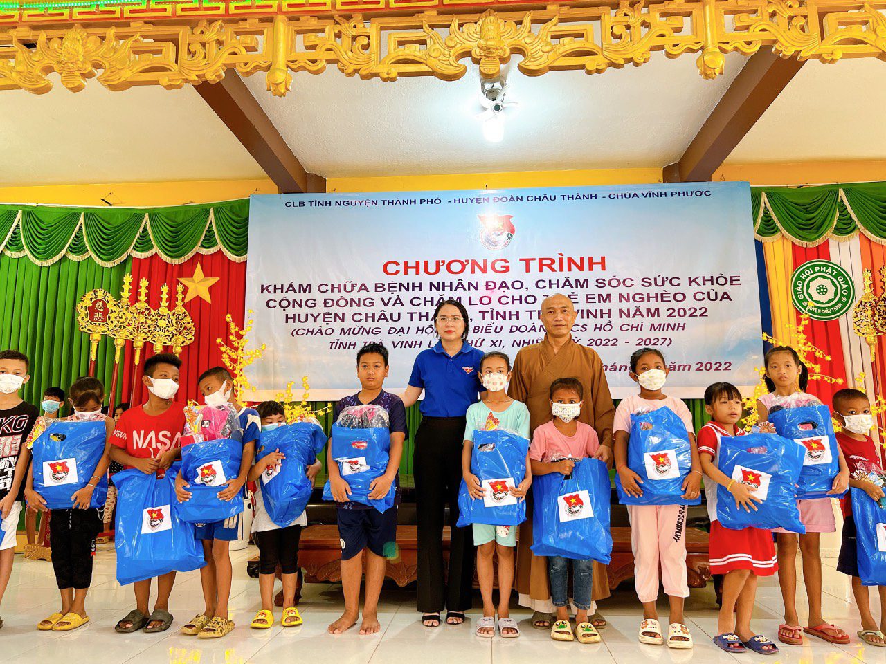 Huyện Đoàn phối hợp với Câu Lạc bộ tình nguyện Thành Phố Hồ Chí Minh tổ chức Chương trình khám chữa bệnh nhân đạo, chăm sóc sức khỏe cộng đồng và chăm lo cho trẻ em nghèo trên địa bàn huyện. Kết quả đã khám và cấp phát thuốc miễn phí cho 600 người dân thuộc diện hộ nghèo, hộ cận nghèo và trẻ em nghèo của 3 xã Hòa Lợi, Phước Hảo, Hưng Mỹ với kinh phí 84.000.000đ. Dịp này, Huyện đoàn đã tặng 60 phần quà cho trẻ em nghèo trên địa bàn xã Hòa Lợi, xã Phước Hảo, xã Hưng Mỹ, mỗi phần quà trị giá 400.000đ nghìn đồng, trị giá các phần quà là 24.000.000đ. Tổng trị giá hoạt động là 108.000.000đ.