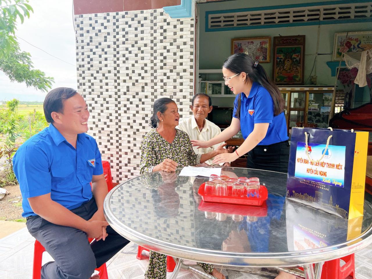 Đồng chí Lê Minh Thư – Bí thư Huyện đoàn Châu Thành và đồng chí Võ Hoàng Nam – Bí thư Huyện đoàn Cầu Ngang thăm và tăng quà cựu TNXP cô Thạch Thị Dông ấp Căn Nom, xã Trường Thọ, huyện Cầu Ngang
