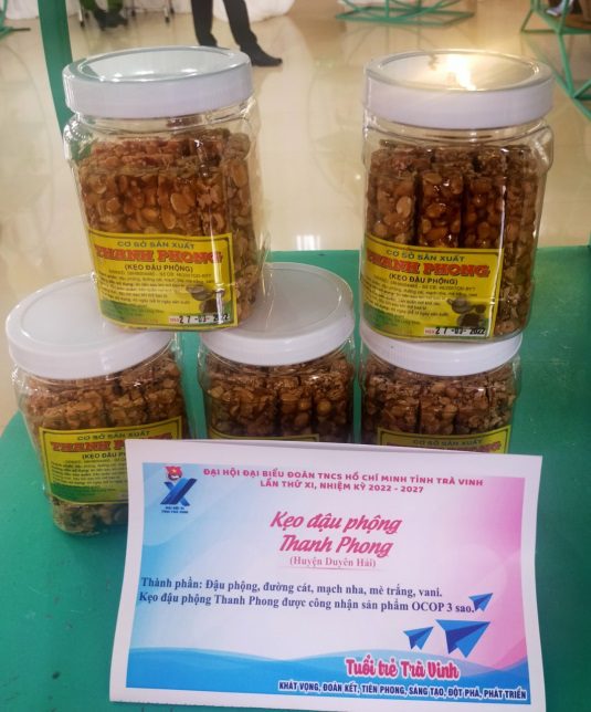 Tiếp tục thực hiện có hiệu quả Chương trình OCOP, những năm qua các cấp bộ Đoàn – Hội trong tỉnh luôn quan tâm, đồng hành với các cơ sở sản xuất kinh doanh, nhằm hỗ trợ các sản phẩm đạt chứng nhận sản phẩm OCOP của tỉnh. Năm 2022, Ban Thường vụ Tỉnh đoàn chọn hỗ trợ 03 xã triển khai Chương trình OCOP (xã Phước Hảo – huyện Châu Thành; xã Long Vĩnh – huyện Duyên Hải, xã Thông Hòa – huyện Cầu Kè), hỗ trợ thực hiện cụ thể như: tổ chức các lớp tập huấn chuyên đề, tại lớp tập huấn, các bạn đoàn viên, thanh niên và người dân được giới thiệu tổng quan về Chương trình OCOP; sản phẩm và tiêu chuẩn sản phẩm OCOP; quy trình đánh giá phân hạng sản phẩm. Ngoài ra, các vấn đề về liên kết chuỗi giá trị trong chương trình OCOP, xây dựng, phát triển thương hiệu sản phẩm OCOP, việc xây dựng hệ thống truy suất nguồn gốc sản phẩm; các chính sách hỗ trợ khởi nghiệp từ chương trình “Mỗi xã một sản phẩm” (OCOP).