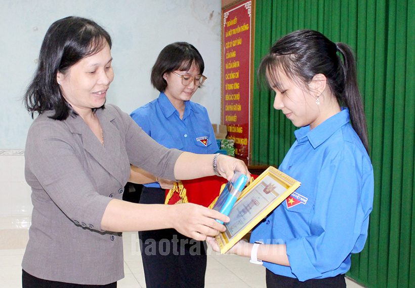 Đồng chí Nguyễn Trọng Nhân, Bí thư Đoàn Khối trao giấy khen cho thí sinh đoạt giải Nhì.